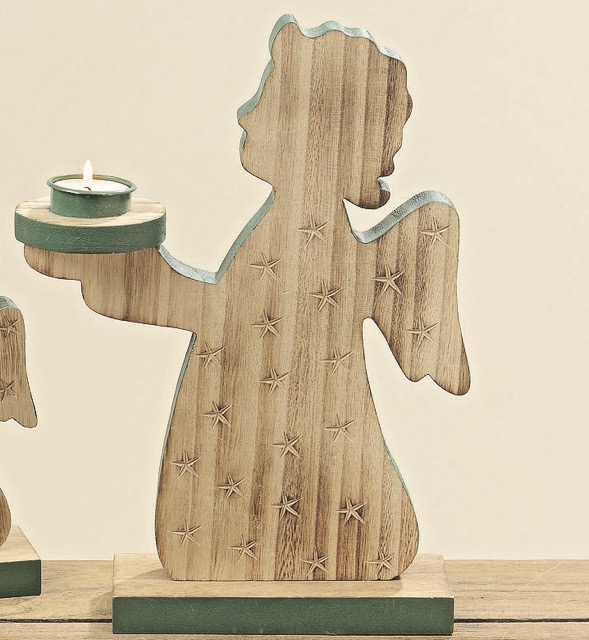 Dieser Teelichthalter Engel ist 32 cm hoch und zaubert eine phantastische weihnachtliche Stimmung in Ihr Wohnzimmer. Verwendet wurde brauner Tungbaum. Der Lieferumfang umfasst ein Teelicht.